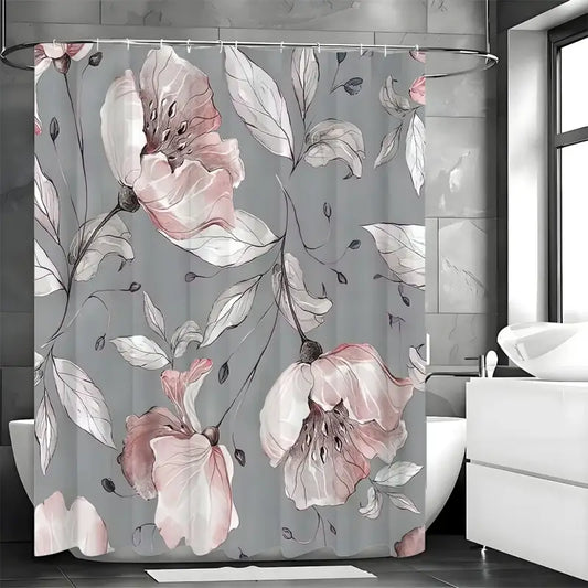 Wasserdichtes Duschvorhang-Set mit rosa Blumen