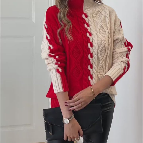 Elevate your winter style with this cozy and chic knitted sweater, combining comfort with a striking black and white design that makes a bold fashion statement.