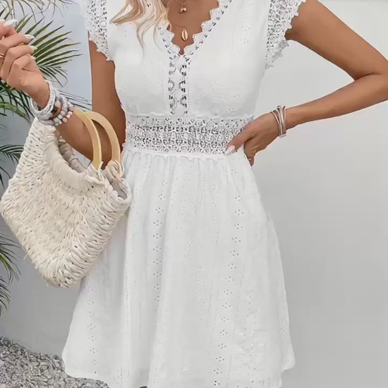 Women's Lace Stitching Cut-Out Jacquard V-neck Dress